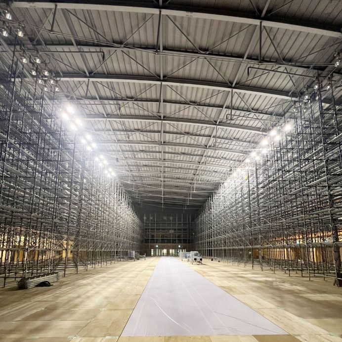 大きな配管やダクトを設置するための足場や、天井から吊り下ろして組む吊り足場、本足場と呼ばれる足場を組み上げるんだ。